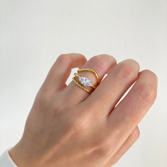 Golden Wave Pear Ring